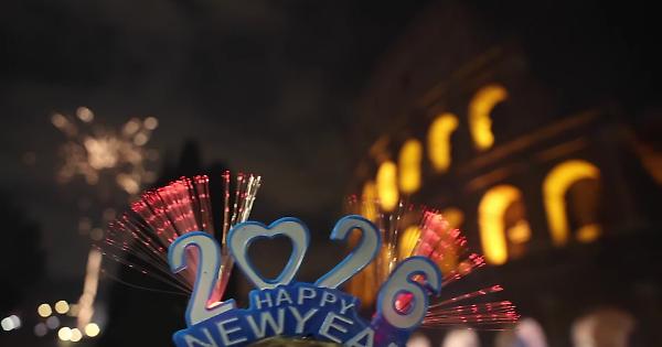 Fuochi d'artificio davanti al Colosseo: così molti turisti e residenti hanno festeggiato la mezzanotte davanti al monumento simbolo della capitale, con lo sguardo all'insù tra giochi di colori e luci. (Immagini di Massimo Percossi)